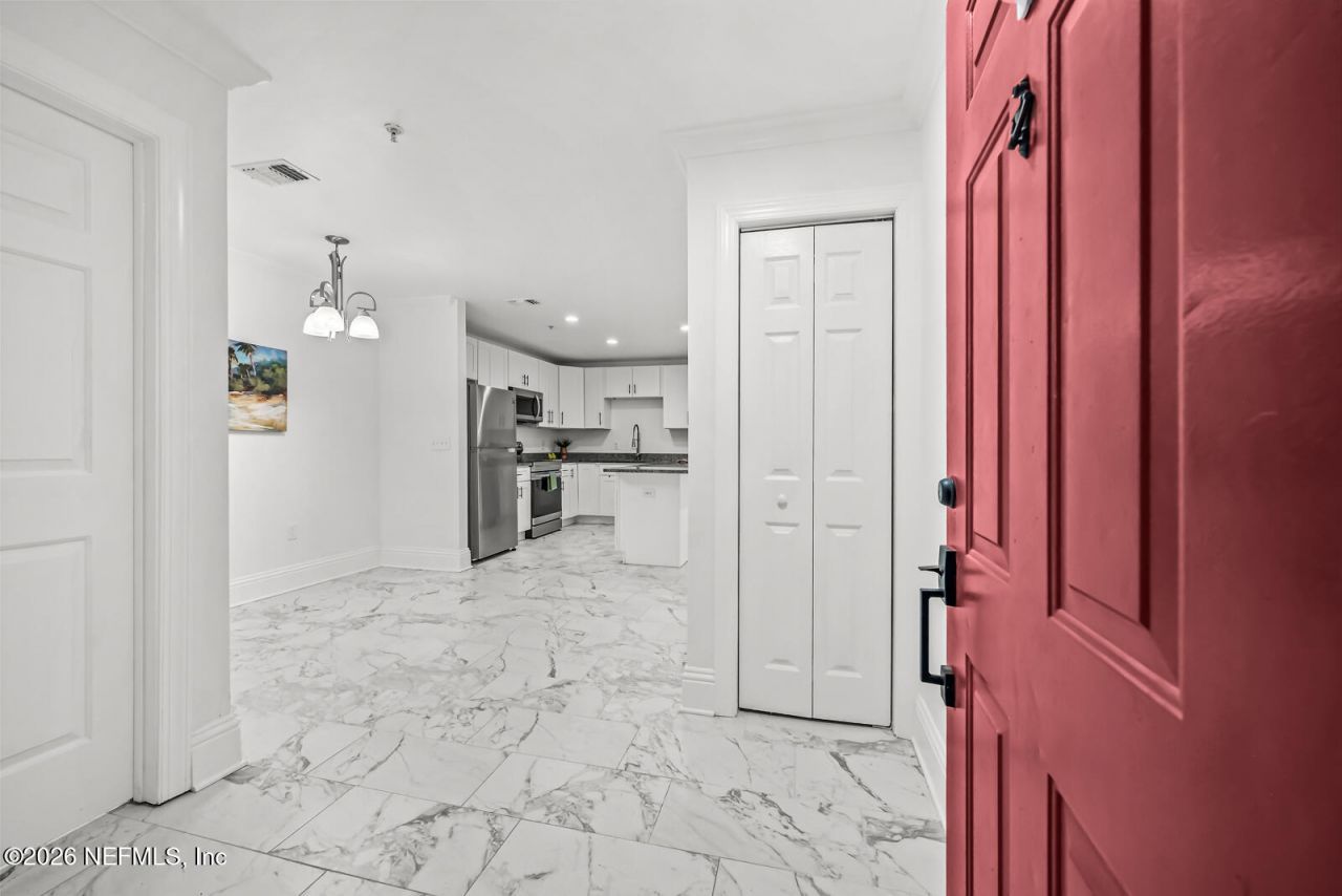 Move-in updated ground floor 1 bedroom condo! Centrally located to everything! Close by to shopping, retail, Publix, Mayo Clinic, UNF, the Beaches, St Johns Town Center & Mayport base. The community features state of the art amenities w/a swimming pool, hot tub, BBQ & Picnic area, clubhouse, vehicle wash area, exercise room & pest control. Wait until you sit on the screened lanai after you have relaxed all day at the pool! If you like to cook, then you will enjoy the fully equipped kitchen w/newer stainless steel appliances, white cabinets, redesigned huge bar top w/seating & gorgeous Granite counter tops! Indoor laundry room w/washer/dryer & additional closet space. Dining area will accommodate table & hutch. Gathering room has space for large TV, electronics & plenty of room for sectional! Bathroom has also been updated w/large walk-in shower, updated cabinetry & walk-in closet! HVAC-2016; water heater-2022. Parking spot - 226. Water & sewer included in monthly fee.