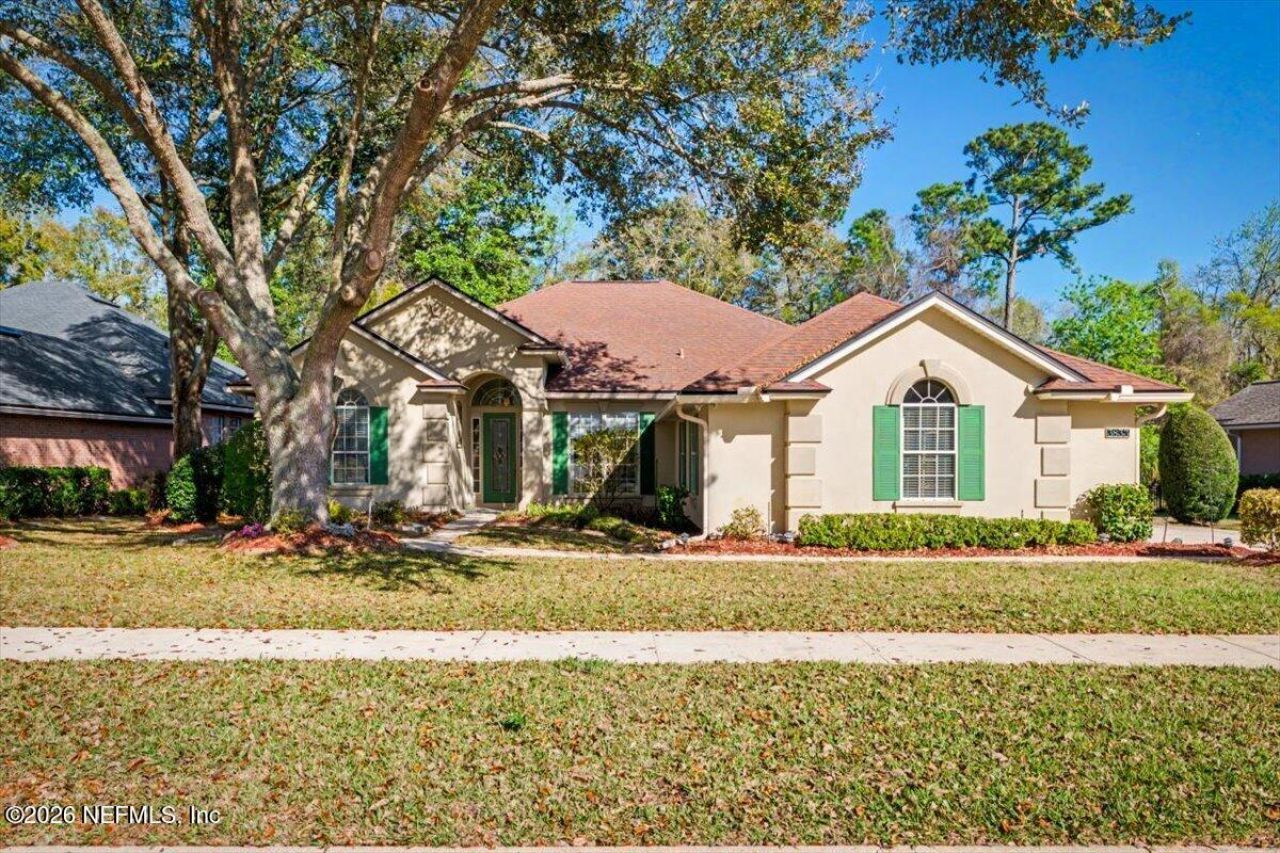 Nestled on a quiet cul-de-sac in the highly sought-after community of Pablo Bay, this stunning home offers relaxed coastal living with breathtaking views of a serene nature preserve. Ideally located just blocks from the world-renowned Mayo Clinic and only minutes from Ponte Vedra Beach, this property combines privacy, convenience, and lifestyle. Upon entering, you are welcomed by soaring ceilings and an expansive, light-filled interior that has been freshly painted and updated with brand-new carpet. The thoughtful floor plan is designed for both elegant entertaining and everyday comfort, featuring a formal living room and formal dining room that flow seamlessly into the heart of the home. At the center of the residence is an impressive open-concept great room and kitchen, where vaulted ceilings and a cozy fireplace create a warm yet airy atmosphere perfect for gathering. Step outside to the porch and unwind while enjoying peaceful views of the tranquil nature preserve - the perfect setting for morning coffee or relaxing evenings. The spacious primary suite features a luxurious bathroom with dual vanities and a relaxing whirlpool tub. The home is also equipped with high-speed fiber-optic internet, perfect for modern living and remote work. Within walking distance to community amenities, including pools, pickleball and dog park. With its premier cul-de-sac location and peaceful preserve views, this home truly represents the best of Pablo Bay.