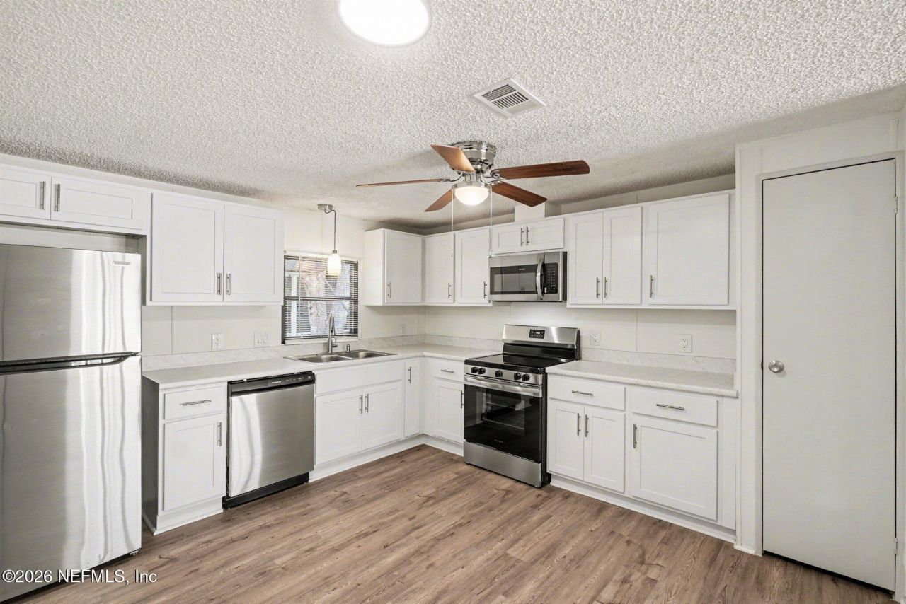 Updated and move-in ready! Charming 3 bed 2 bath home offers comfort, style, and convenience in an ideal location just minutes from the scenic S.t. Johns River and quick access to major highways, shopping, dining, and amenities. Inside, you'll find durable luxury vinyl plank flooring throughout the main living areas and cozy carpet in the bedrooms. The kitchen is perfect for cooking and entertaining, featuring brand new cabinets, sleek stainless steel appliances, and plenty of prep space. Both bathrooms have been tastefully upgraded with designer vanities, stylish tile work, and modern finishes. A beautiful lighting package adds warmth and character throughout the home. Washer and dryer are included! Outside, backyard shed provides great storage for tools and toys, while the oversized attached two-car carport offers plenty of covered parking and convenience. This well appointed home blends modern updates with practical space, making it the perfect place to settle in and enjoy